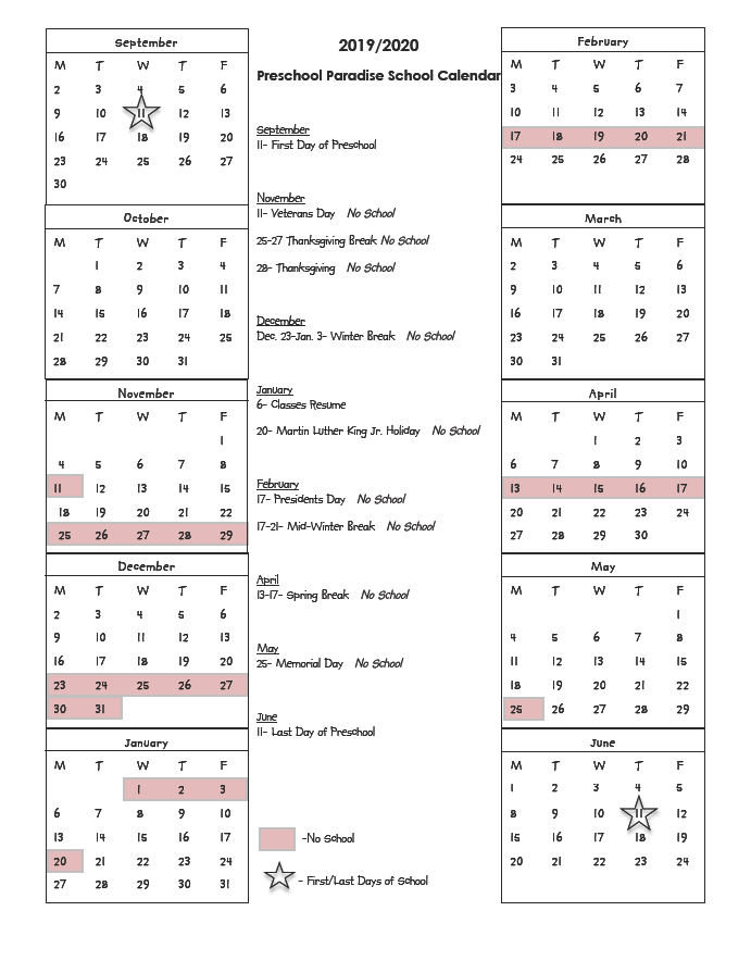 school calendar 2019-2020